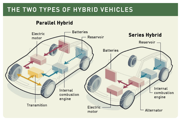 Two main types of hybrid-electric vehicles exist, and they have different advantages and different applications, but both have fuel efficiency advantages over conventional internal combustion engined vehicles.