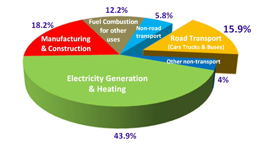 Globally, road transport is responsible for about 16% of man-made CO2 emissions. It is a common misconception that global warming is mainly caused by cars and trucks. It is important to understand that there are other, larger, contributors and ALL sources of CO2 emission must be addressed if the problem is to be solved.